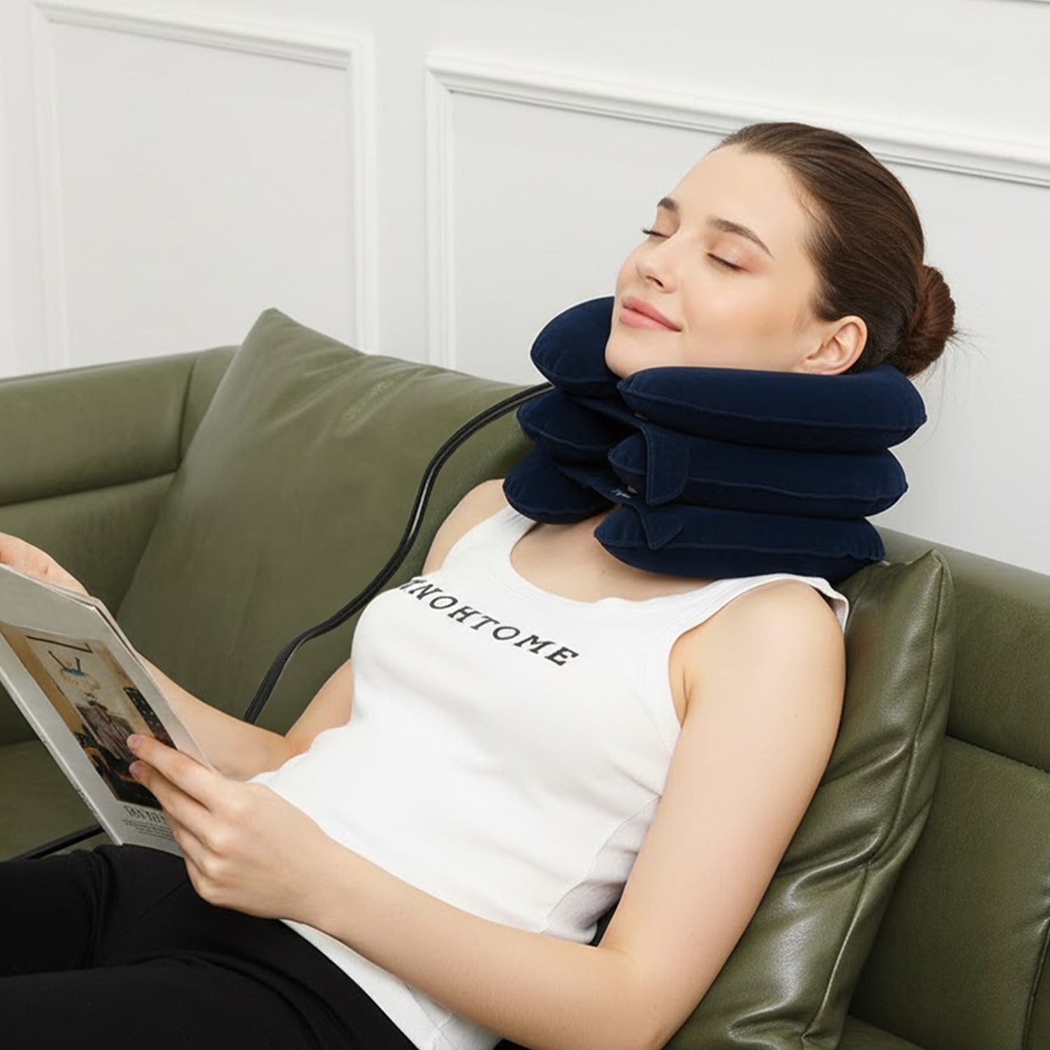 Relieve neck pain effortlessly with this inflatable, chiropractor-recommended cervical decompression device. It’s lightweight, adjustable, and perfect for use at home, in the office, or while traveling.